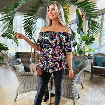 Green Floral Satin Ruched Shoulder Batwing Top
