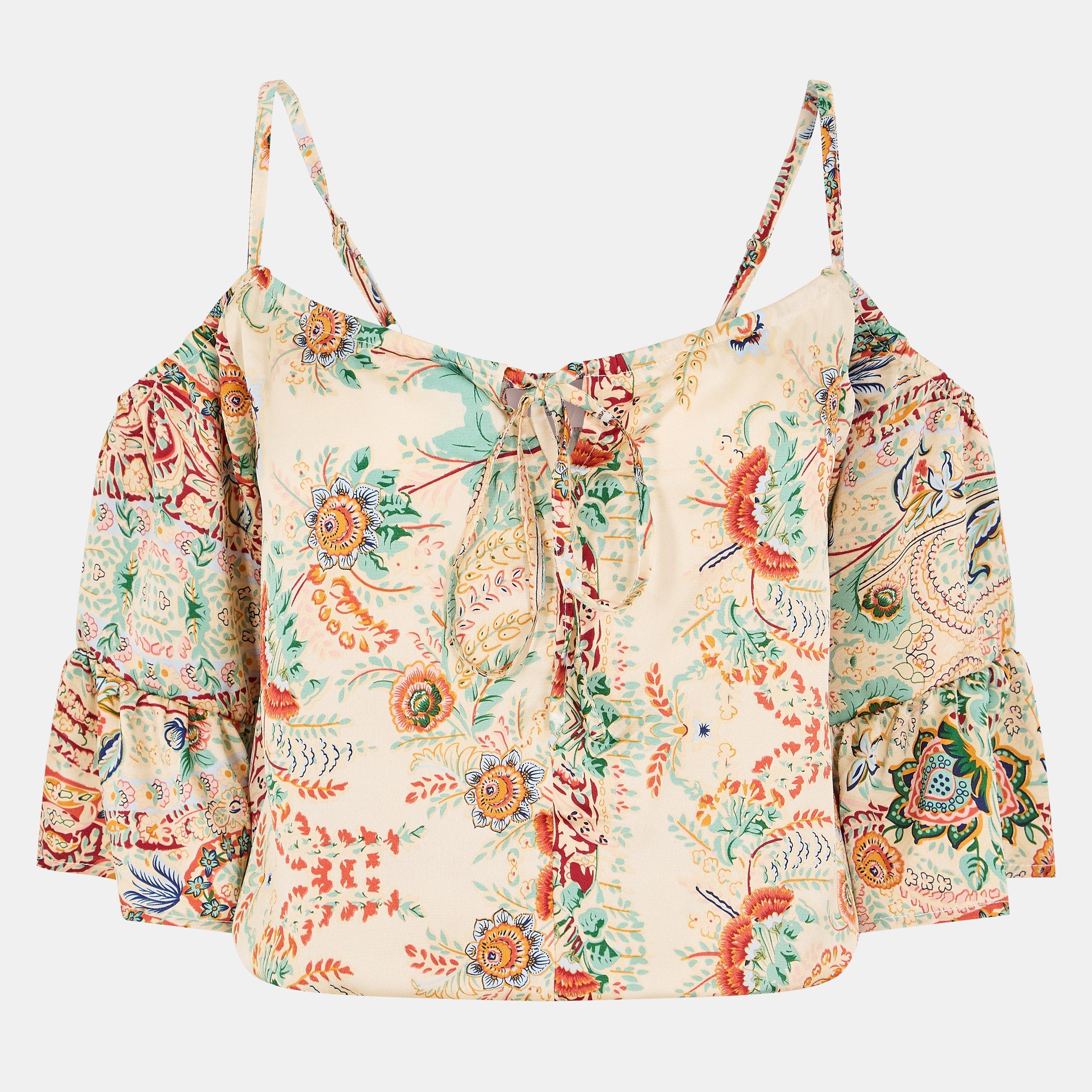 Multi Paisley Print Cut Out Shoulder Top