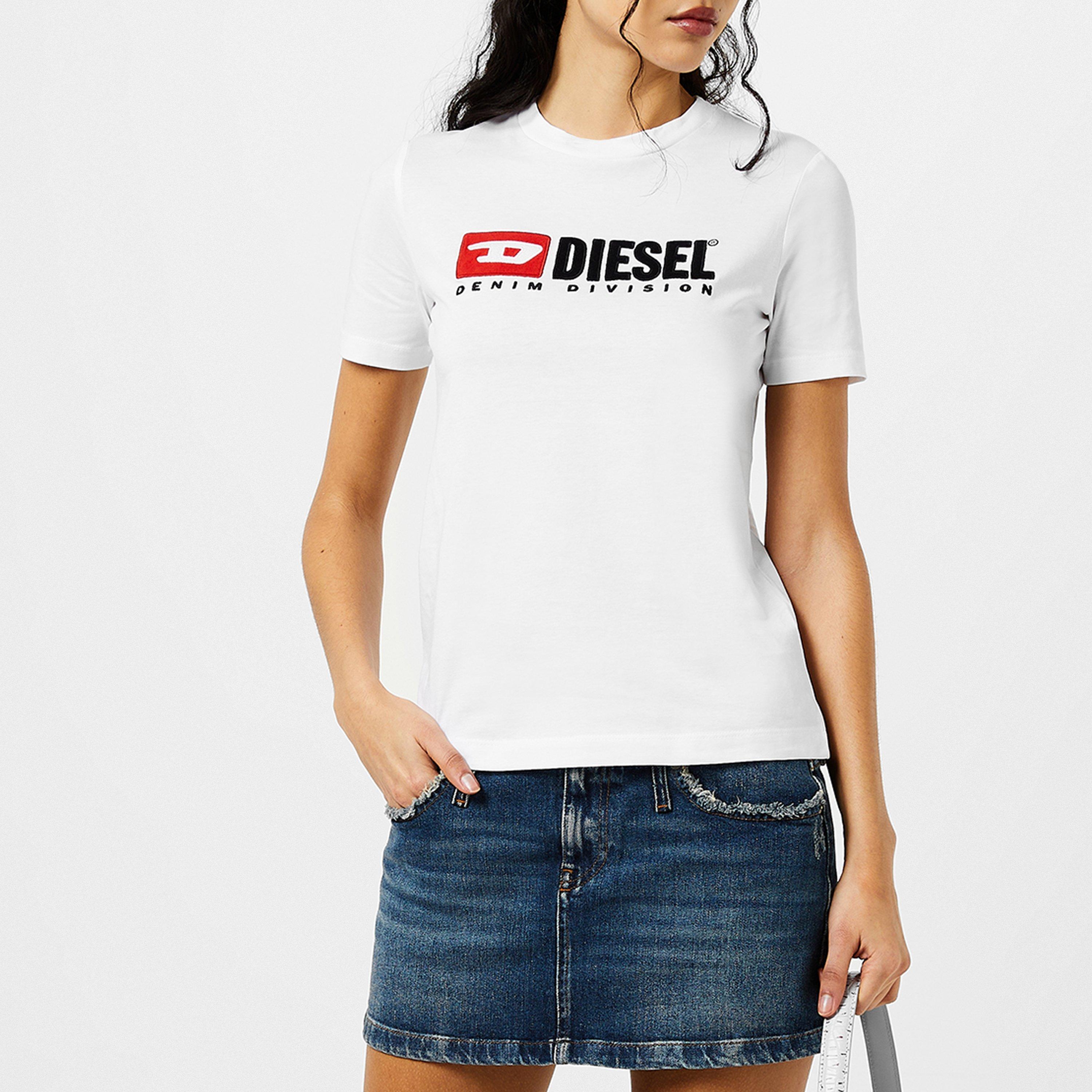 Our new season collection of women's Diesel t-shirts will have you covered for any casual occasion. Browse a selection of short sleeve t-shirts in fitted to oversized styles to find the perfect fit. Choose between classic white and black Diesel t-shirts or stand out from the crowd in bold colourways. Find plain to logo embossed styles to add designer appeal or opt for a graphic print tee for a statement look styled with a pair of Diesel Jeans. Shop the edit of women's Diesel t-shirts to elevate your everyday attire.