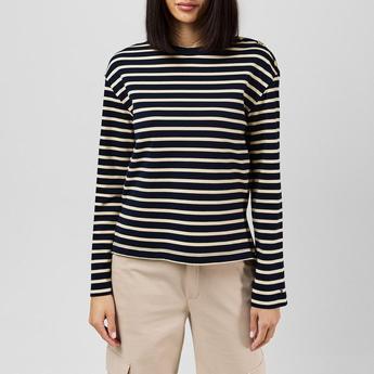 Refresh your casual wardrobe with our new season range of women's stripe t-shirts. Discover a selection of short sleeve and long sleeve striped t-shirts in horizontal or vertical stripes. From fitted to oversized silhouettes, find the perfect fit. Choose a classic black and white striped t-shirt or opt for bold colourways to brighten up your look. With thin to thicker stripe styles, shop the collection of women's striped t-shirts by brands including Barbour, Boss, Tommy Hilfiger and Jack Wills.