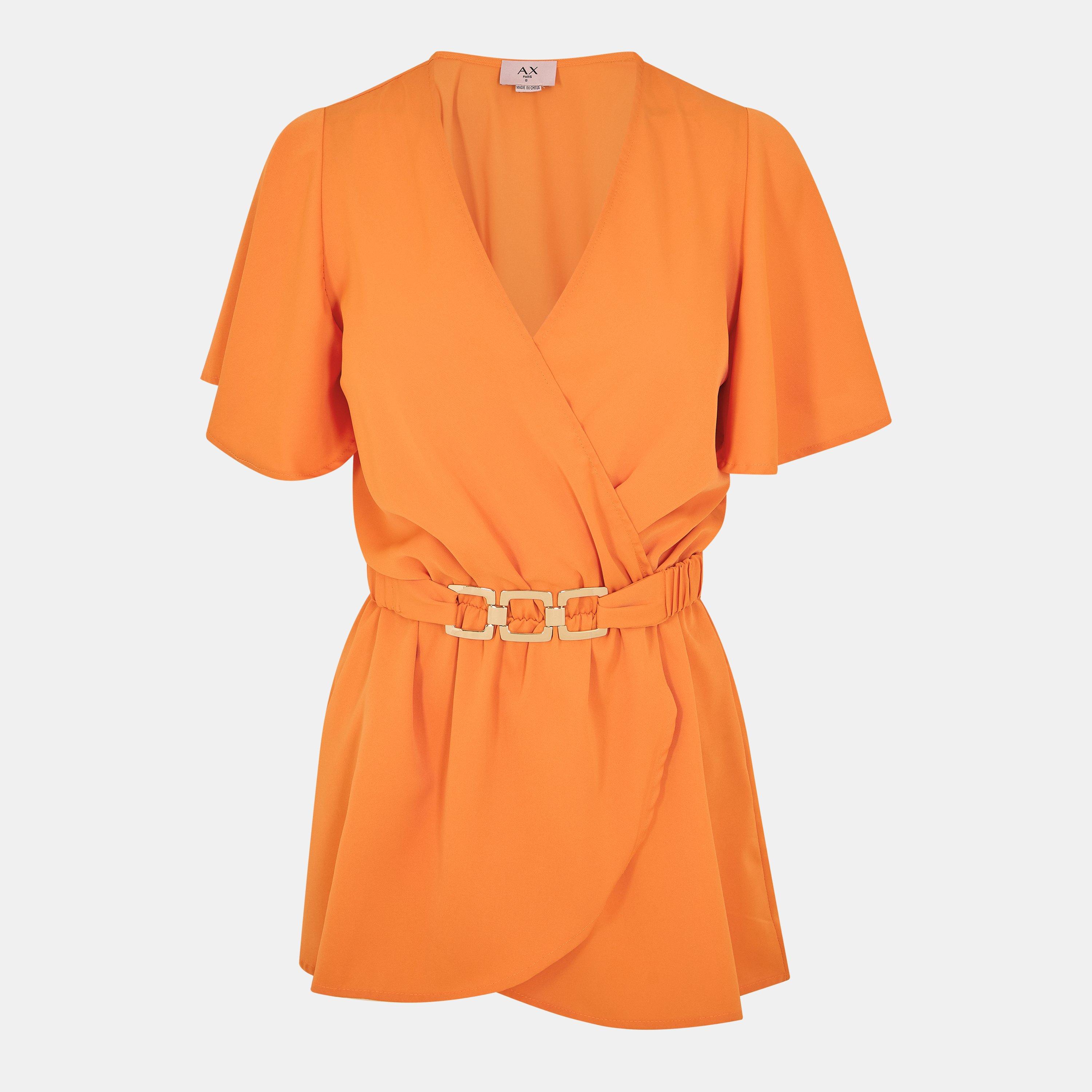 Short Sleeve Wrap Belted Top