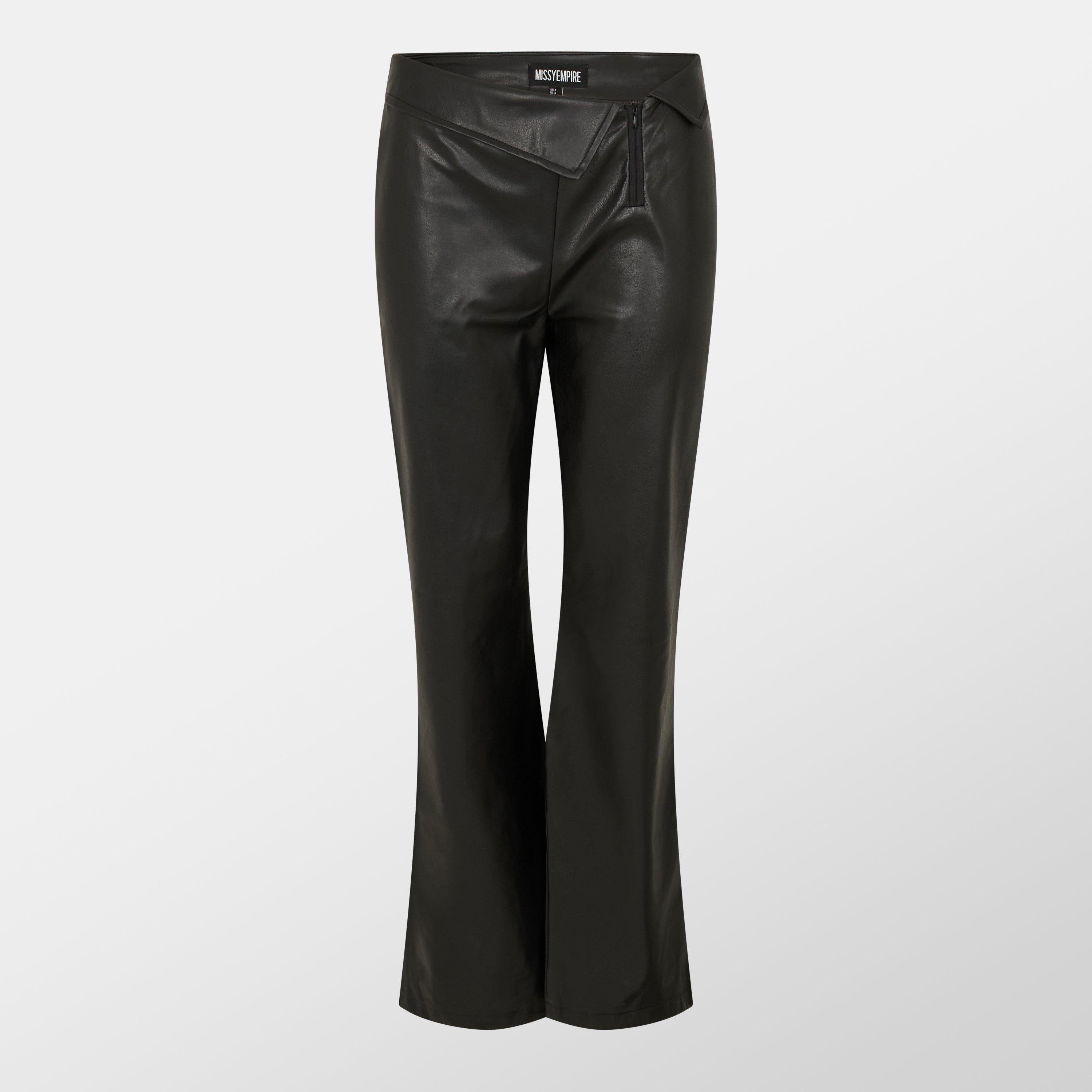 Fold Over Faux Leather Flare Trousers Womens