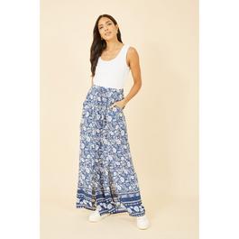Blue Floral Border Relaxed Fit Trousers