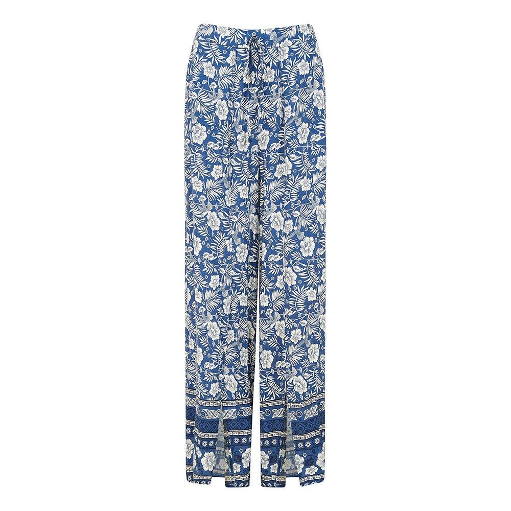 Women's Blue Floral Print Wide Leg Trousers